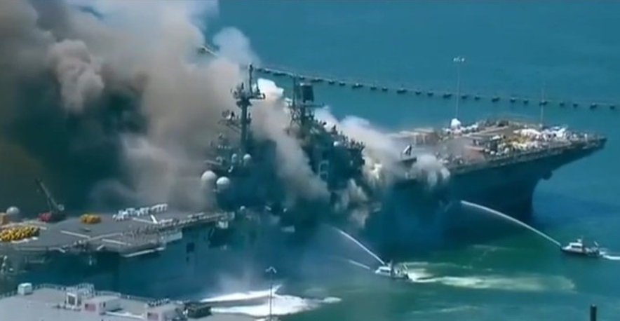 وأظهرت القنوات التلفزيونيّة الأميركيّة دخانًا كثيفًا يتصاعد من السفينة الحربيّة الهجوميّة “يو إس إس بونوم ريتشارد” التي كانت تخضع لأعمال صيانة في القاعدة البحريّة في سان دييغو.