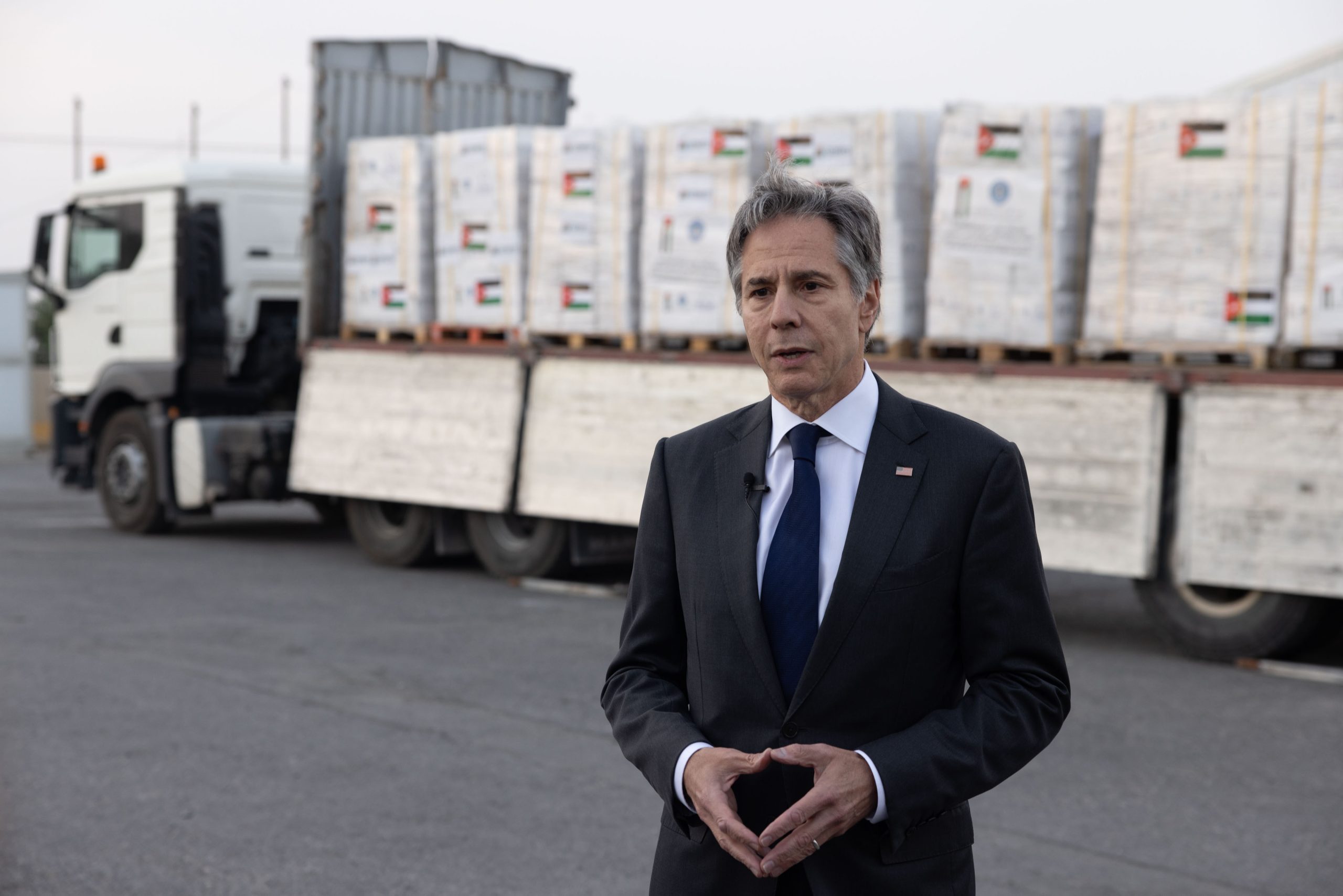 بلينكن يشهد في الأردن انطلاق أول قافلة مساعدات إلى غزة عبر إيريز