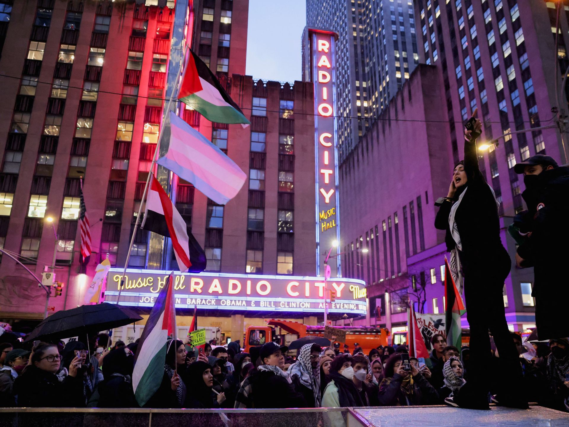 تجمع مئات المتظاهرين المؤيدين لفلسطين في نيويورك خارج حفل لجمع التبرعات لحملة الرئيس الأميركي جو بايدن الانتخابية بحضور الرئيسين السابقين باراك أوباما وبيل كلينتون، وذلك احتجاجا على سياساته الداعمة للحرب الإسرائيلية على غزة.