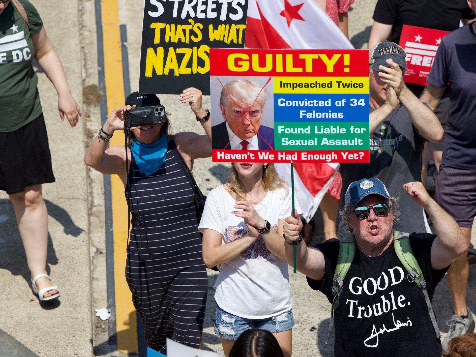 ونُظمت المسيرة تحت شعار “كلنا العاصمة”، وشارك فيها مهاجرون غير مسجلين، ورددوا هتافات مناهضة لترامب وحملوا لافتات كتب على بعضها “على ترامب أن يرحل الآن”، و”حرروا العاصمة”، و”قاوموا الطغيان”.