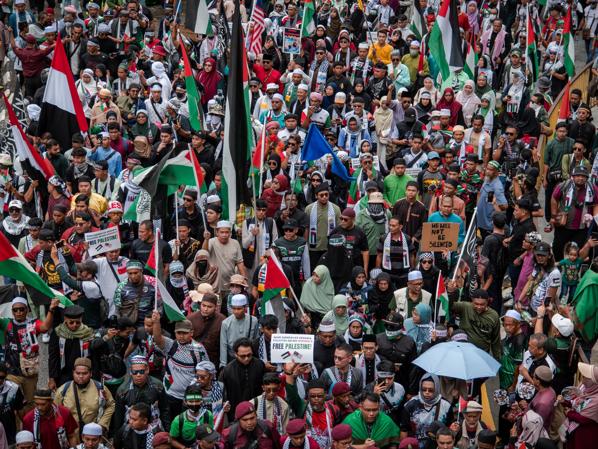 أكبر حشد جماهيري يجتمع منذ بدء الحرب.. مظاهرة في كوالالمبور للتضامن مع القضية الفلسطينية والمطالبة بوقف العدوان الإسرائيلي على قطاع #غزة