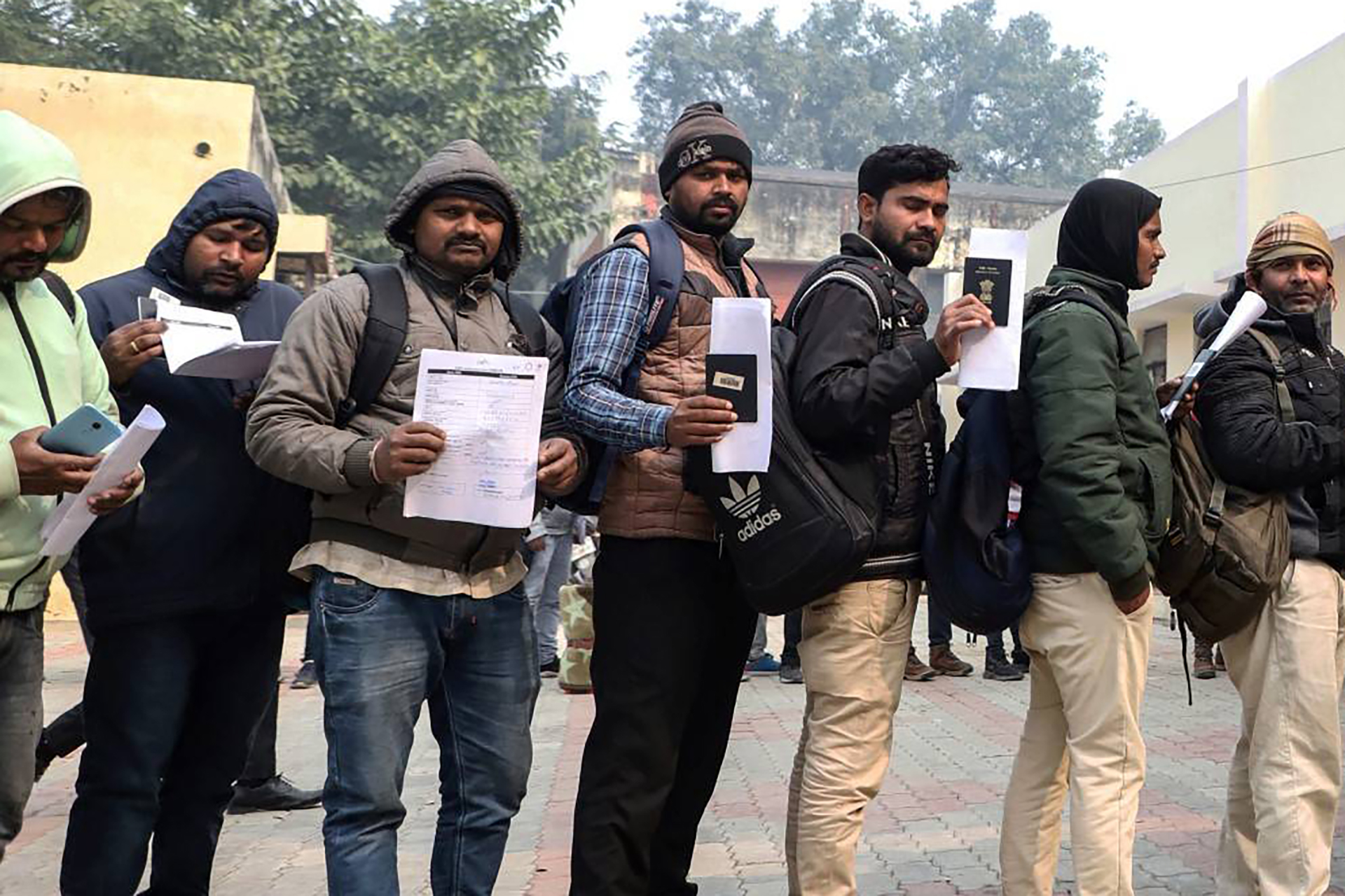 “لمَ نغادر إلى بلد في حالة حرب لو قُيض لنا عمل هنا؟ إننا نخاطر بأنفسنا أيما مخاطرة”، يقول نجار يقف في الطابور اسمه نارندرا كومار.