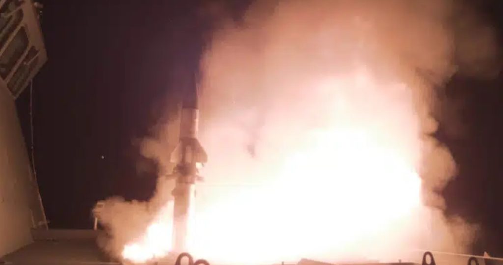 والتقطت مقاطع مصورة تم تداولها على وسائل التواصل الاجتماعي لإطلاق الصواريخ واعتراض مقذوفات أطلقت فوق البحر.