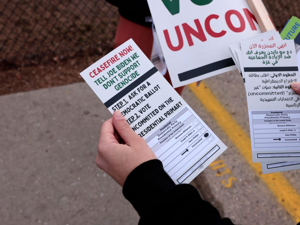 وقالت إن الرئيس الأميركي يواجه اختبارا اليوم الثلاثاء في الانتخابات التمهيدية للحزب الديمقراطي بولاية ميشيغان، حيث توجد أعداد كبيرة من الناخبين من أصول عربية، وذلك وسط دعوات لوضع العلامة على اختيار “غير ملتزم” في بطاقات الاقتراع في هذه الانتخابات، وهو ما يعني عدم التصويت لبايدن.