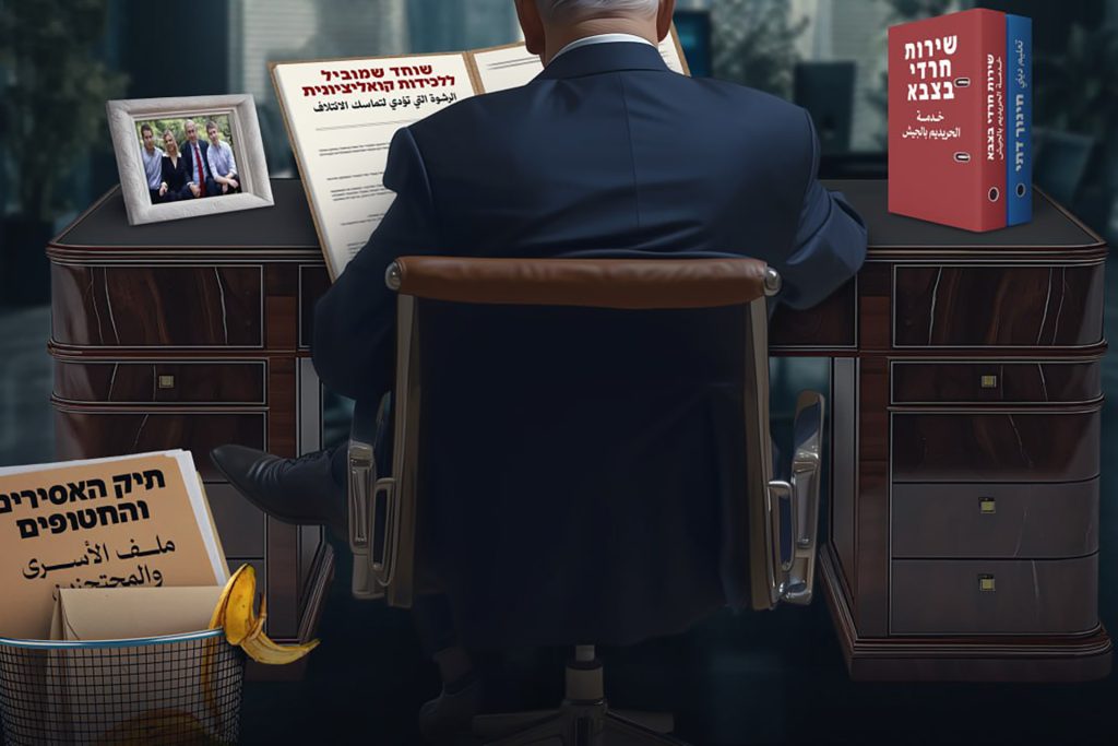وتُظهر الصورة التي نشرتها القسام عبر حسابها في تليغرام، رئيس الوزراء بنيامين نتنياهو وقد ألقى في سلة المهملات بملف يحمل اسم “ملف الأسرى” ويستبدله أمامه بملف آخر يحمل عنوان “الرشوة التي تؤدي لتماسك الائتلاف الحاكم”.