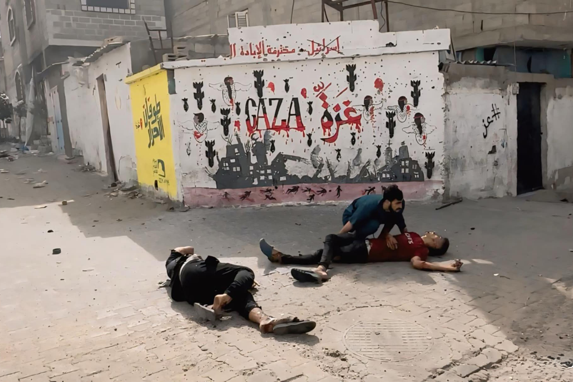 الشهداء على الأرض في شوارع رفح الآن.