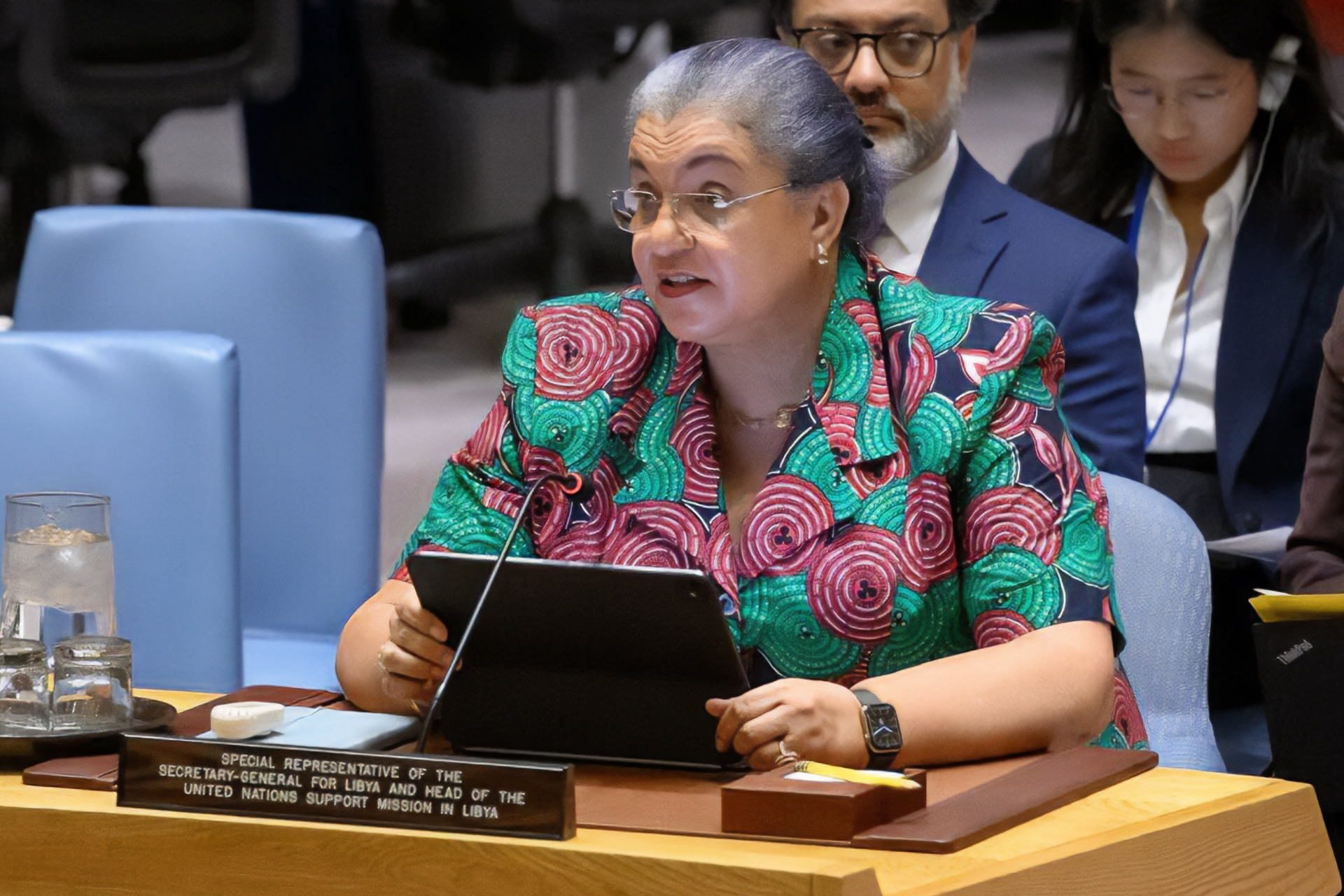 وحذّرت المبعوثة الأممية الخاصة من تفاقم الوضع الأمني، مشيرة إلى ارتفاع وتيرة التسلح والتوتر بين الأجهزة المسلحة.