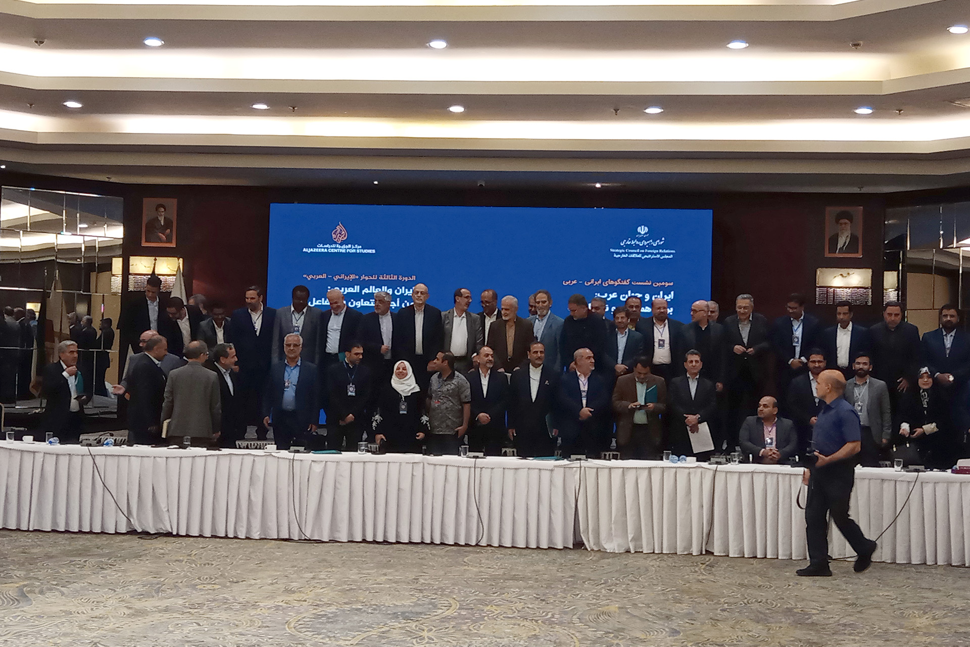 وتحت عنوان “خلاصات وتوصيات”، تحدث -خلف الأبواب المغلقة- كل من عباس عراقجي أمين المجلس الإستراتيجي للعلاقات الخارجية الإيرانية، ومدير مركز الجزيرة للدراسات محمد المختار الخليل، في الحفل الختامي الذي حضره كذلك كمال خرازي رئيس المجلس الإستراتيجي للسياسات الخارجية ومستشار مكتب المرشد الأعلى في إيران.