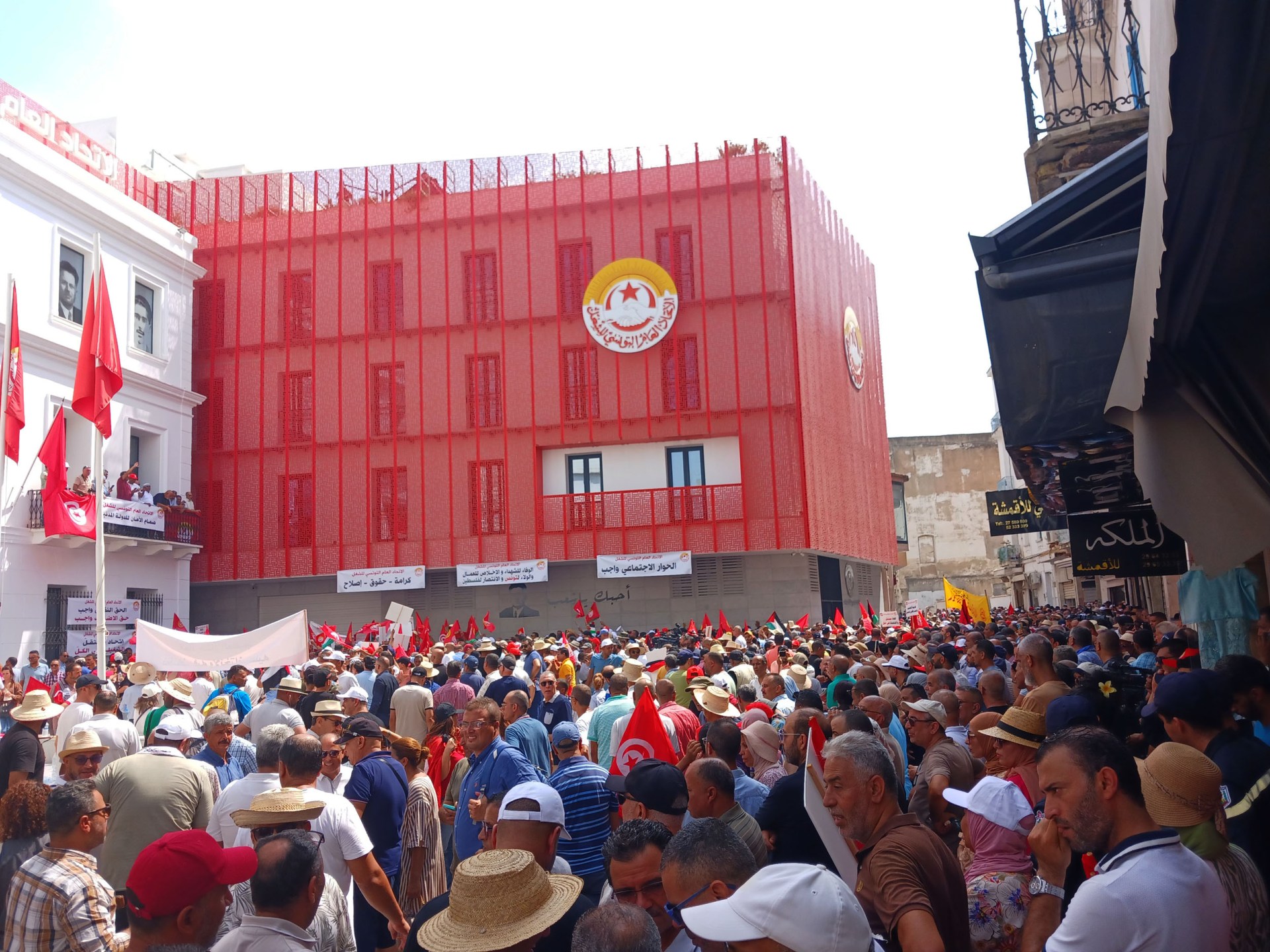 رسائل مسيرة اتحاد الشغل في تونس للسلطة