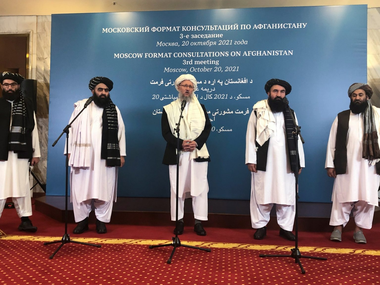 ورفعت روسيا في أبريل/نيسان الماضي حظرها على حركة طالبان، التي صنفتها لأكثر من عقدين منظمة إرهابية، في خطوة مهدت الطريق أمام موسكو لتطبيع العلاقات مع الحركة التي تقود أفغانستان.