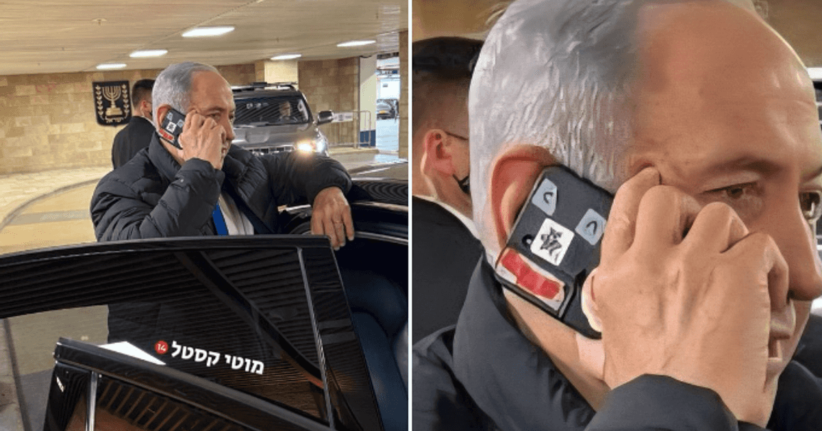 كما ظهر نتنياهو في صورة أخرى انتشرت بشكل واسع على شبكات التواصل الاجتماعي وهو يغطي كاميرا هاتفه المحمول بشريط لاصق أثناء تحدثه في الهاتف، ويعتقد أن هذا الإجراء يهدف لمنع التجسس أو تسجيل المحادثات.