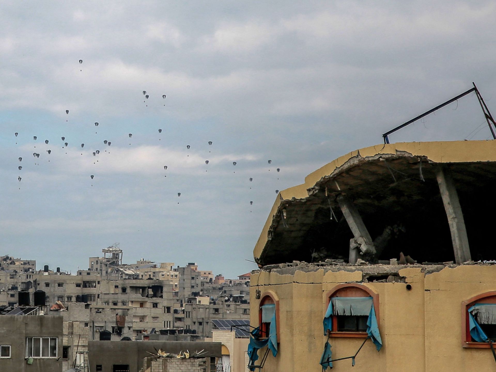 نفذت طائرات سلاح الجو الملكي الأردني مجددا عمليات إلقاء مساعدات إنسانية من الجو، على عدد من المواقع في شمال قطاع غزة بمشاركة طائرات مصرية وأميركية وفرنسية وبلجيكية، وفي حين قال الرئيس المصري عبد الفتاح السيسي إن المساعدات من الجو تحدث بسبب الصعوبات التي تواجه عمليات إدخالها برا، أكد رئيس بلدية جباليا مازن النجار إن هذه المساعدات لا تسد الحاجة، والحل هو فتح المعابر .