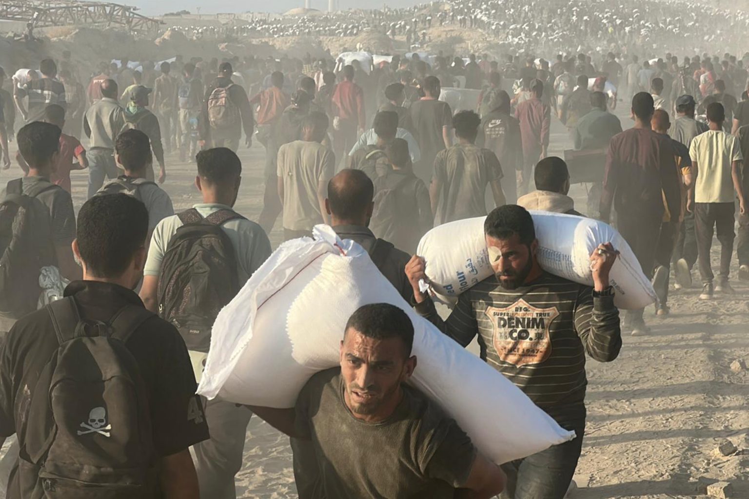 وما إن يهدأ غبار الشاحنات، وتنخفض أصوات المدافع والرشاشات، حتى يبدأ العائدون فارغي الأيدي مهمة أخرى: تغطية أجساد الشهداء بأكياس بلاستيكية كانت تغطي شاحنات الطحين، حيث ترقد الأجساد المجوعة، التي لن تعود إلى المكان الشاهد على تجويعها مرة أخرى، دون أن يحظى أطفالهم بما يخفف جوعهم.