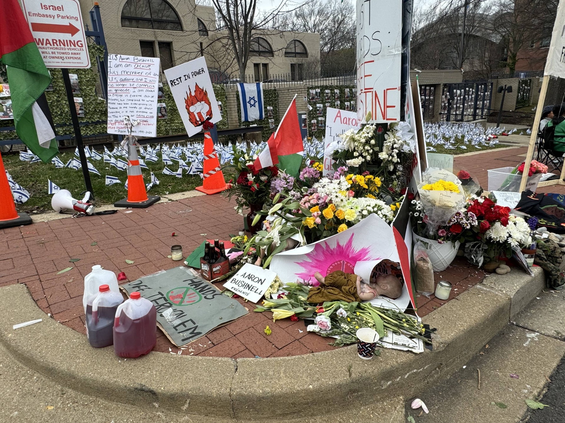 آرون بوشنل، عندما وضع هاتفه الخلوي على الأرض لتجهيز بثّ مباشر، أشعل النار في نفسه أمام السفارة الإسرائيلية في واشنطن العاصمة، مما أدّى إلى وفاته في واقعة عنف سلمي ضد الشر المتطرف.