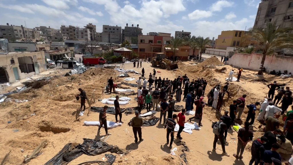 يشرح قائد مهمة استخراج الشهداء في مستشفى ناصر الرائد “رائد صقر” حقيقة ما جرى، موضحا أن الفلسطينيين الذين حوصروا داخل مجمع ناصر الطبي على مدى أشهر من العملية البرية التي شنها الجيش الإسرائيلي في خان يونس منذ بداية ديسمبر/كانون الأول 2023 وحتى 7 أبريل/نيسان الجاري، اضطروا خلالها لإقامة العديد من المقابر العشوائية في ساحاته لدفن الشهداء والموتى من المرضى.