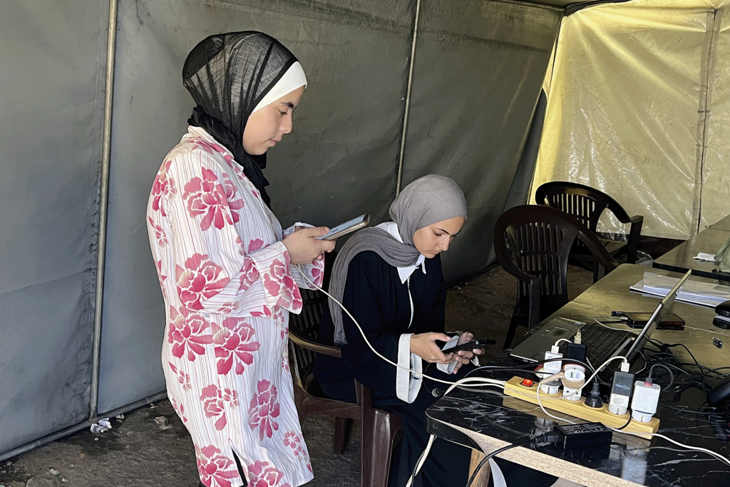 يحكي “اليوم مشكلتي كانت شحن الجوال، ما في كهرباء، بطارية هاتفي كانت 28% فقط، تنقلنا من حي تل الهوا حتى منطقة التشريعي لنجد مقهى فيه كهرباء وإنترنت، لكن ساعة كاملة ضاعت، وهي مدة الامتحان، ولم نتمكن من الدخول للمنصة، ولم أستطع شحن بطارية الهاتف”.