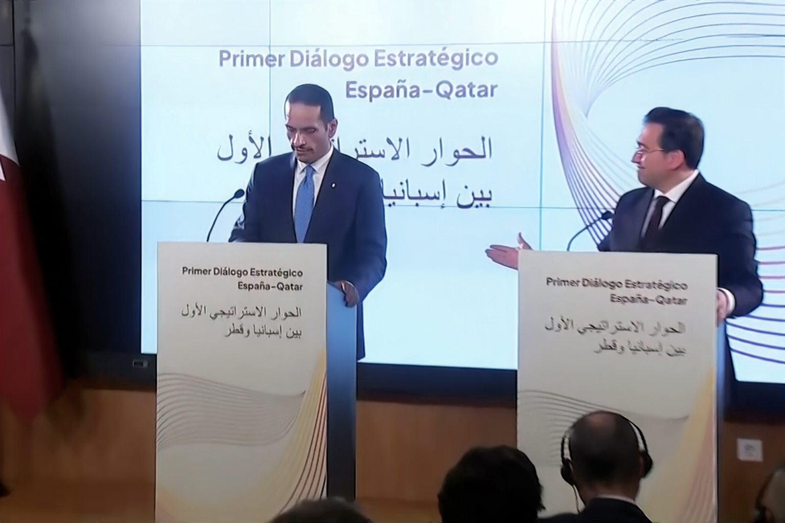 وأضاف رئيس الوزراء القطري في مؤتمر صحفي مشترك مع ألباريس في مدريد أنه يتعين على الدول أن تقوم بخطوات لدعم حل الدولتين، معتبرا أن اعتراف إسبانيا بالدولة الفلسطينية خطوة تاريخية ومهمة جدا.