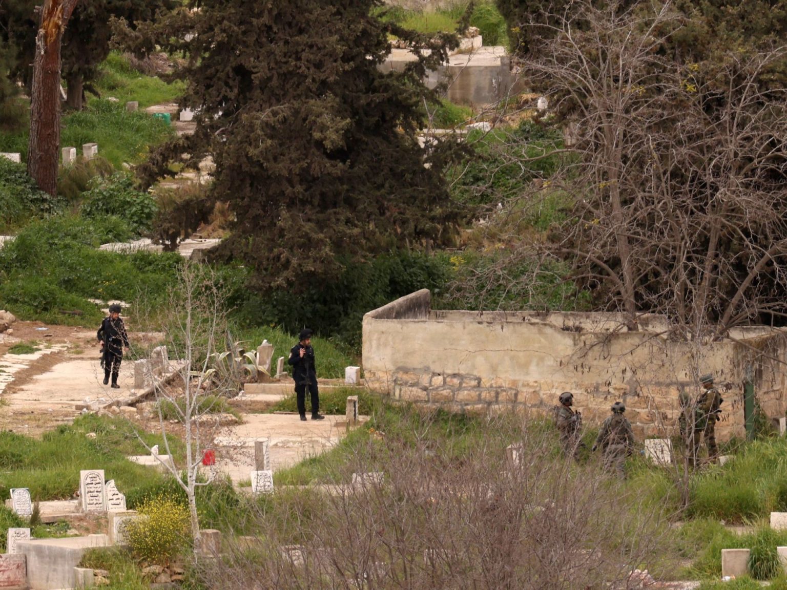 وتداول صحفيون وناشطون على منصات التواصل مقاطع فيديو لمسلح، يُعتقد أنه في العقد الخامس من عمره، يطلق النار من داخل المقبرة قبل مقتله، وأخرى لتعزيزات الجيش الإسرائيلي وتوقيف عدد من الفلسطينيين وإخضاعهم للتفتيش.