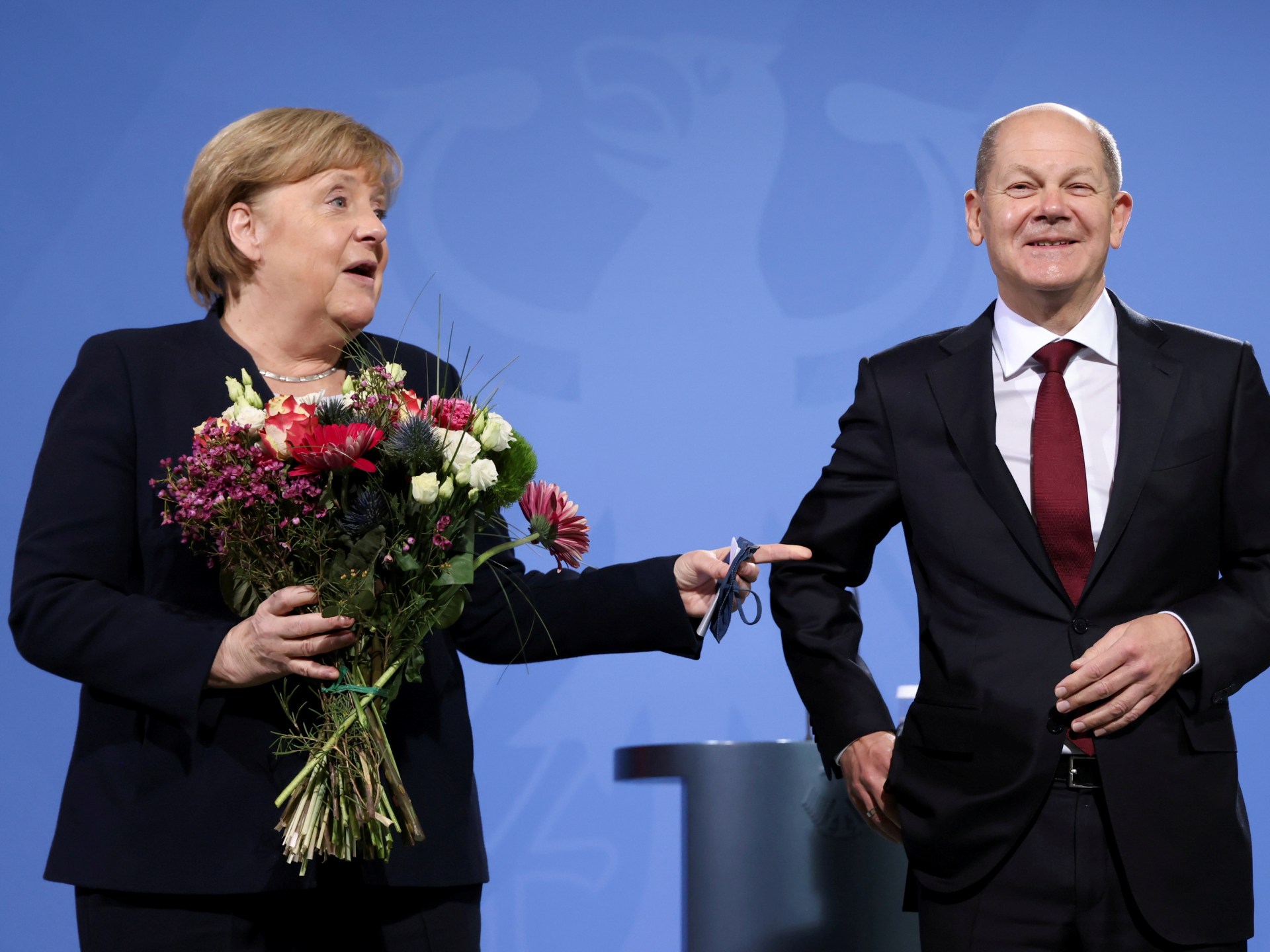 ويدين شولتس مرشح الحزب الاشتراكي الديمقراطي بالفوز في الانتخابات البرلمانية لعام 2021 لأمرين أساسيين، الأول: استفادته من ضعف منافسيه، خصوصا أن مرشح التحالف المسيحي المحافظ (تنتمي له ميركل) كان أرمين لاشيت الذي ارتكب أخطاء عدة، منها ظهوره يضحك أثناء كارثة الفيضانات التي ضربت غرب ألمانيا، وكذلك اكتشاف سرقة أدبية اقترفها.