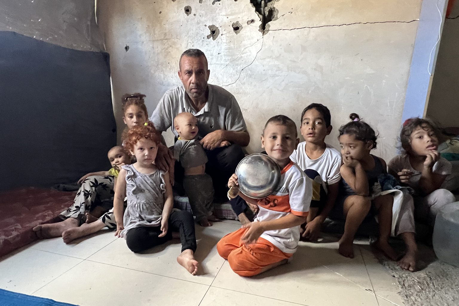 في أقل من 3 أشهر، فقد الجليس ثلاثة من أصهاره (أزواج بناته) في وقائع متفرقة ولكنها جميعا مرتبطة بالجوع الذي يعاني منه قطاع غزة، وكانت النتيجة أن 14 طفلا تيتموا دفعة واحدة، وجاؤوا جميعا إلى حضن الجد، الذي بات يحمل أعباء لا طاقة له بها.