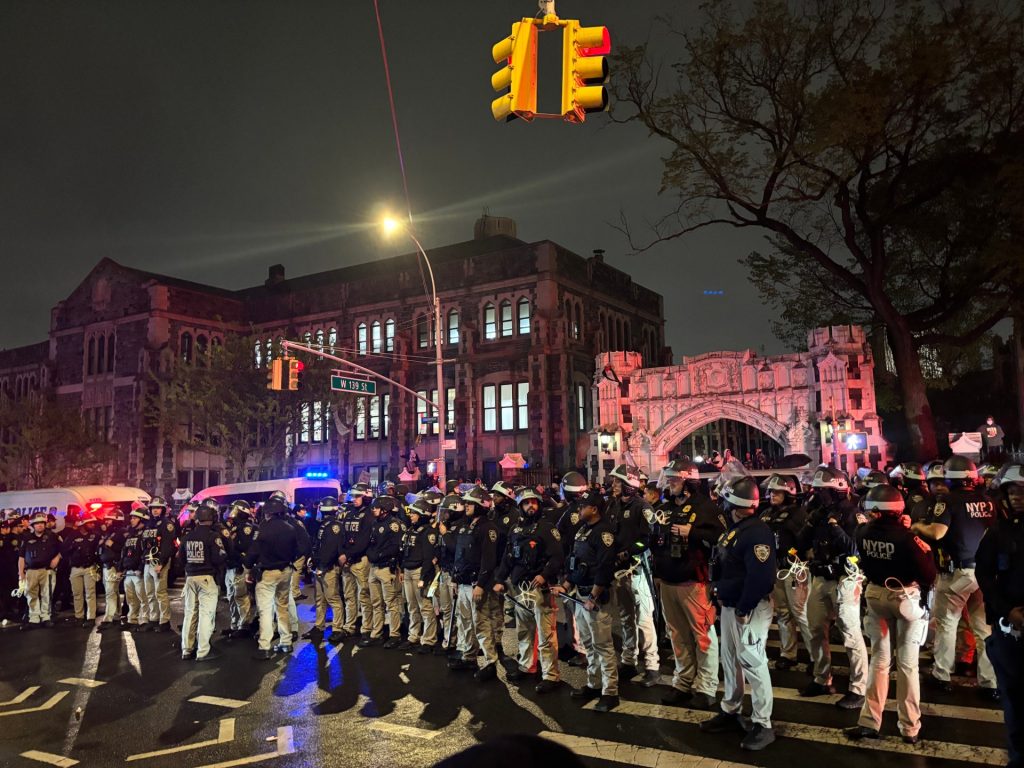وصلت معلومات عن قرب اقتحام شرطة نيويورك لمباني الجامعات وفض الاعتصامات فيها. وبدأت الشرطة بدفع المتظاهرين بعيدا عن أبواب الجامعة، حيث بدأت فرقة الاستجابة الإستراتيجية بالحضور بأعداد غفيرة في كلا المقرّين، وهي الوحدة المعنية بفض المظاهرات والتجمعات.