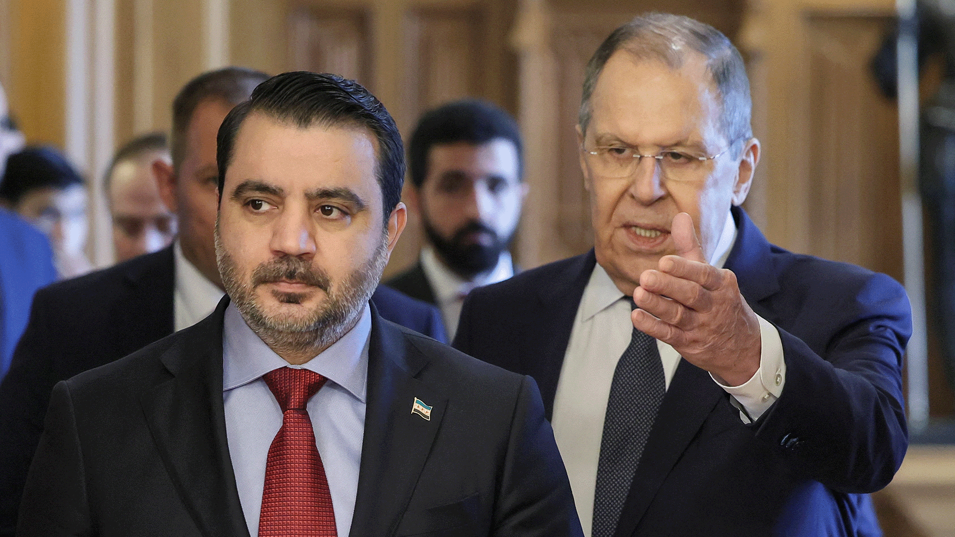 لقاء الشيباني (يسار) نظيره الروسي لافروف تضمن الاتفاق على إعادة النظر في الاتفاقيات الثنائية (الفرنسية)
