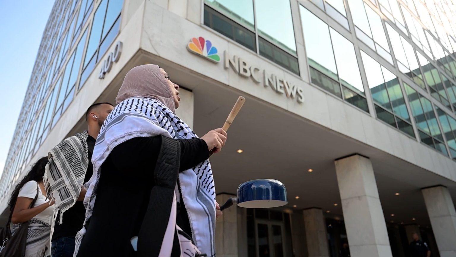 تظاهر عدد من الأميركيين أمام مكاتب مؤسسات إخبارية معروفة منها “إن بي سي” و”فوكس نيوز” في العاصمة واشنطن، احتجاجا على تغطيتها المنحازة لمصلحة إسرائيل التي ترتكب إبادة جماعية بحق الفلسطينيين في قطاع غزة.