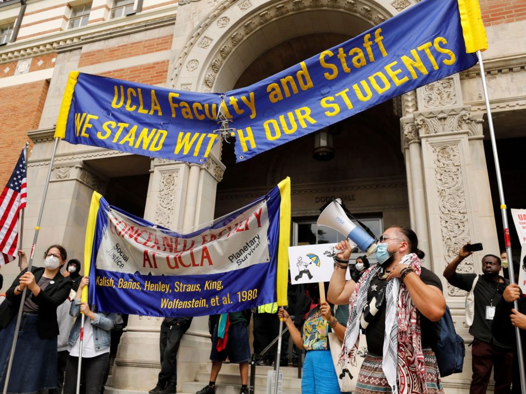 ومساء أمس بالتوقيت المحلي أقام طلبة مؤيدون لفلسطين مخيما جديدا في حرم جامعة كاليفورنيا بلوس أنجلوس بعد أسابيع من تعرض مخيمهم الأول لهجوم عنيف من قبل متظاهرين مناهضين، ثم تم تفكيكه من قبل الشرطة.