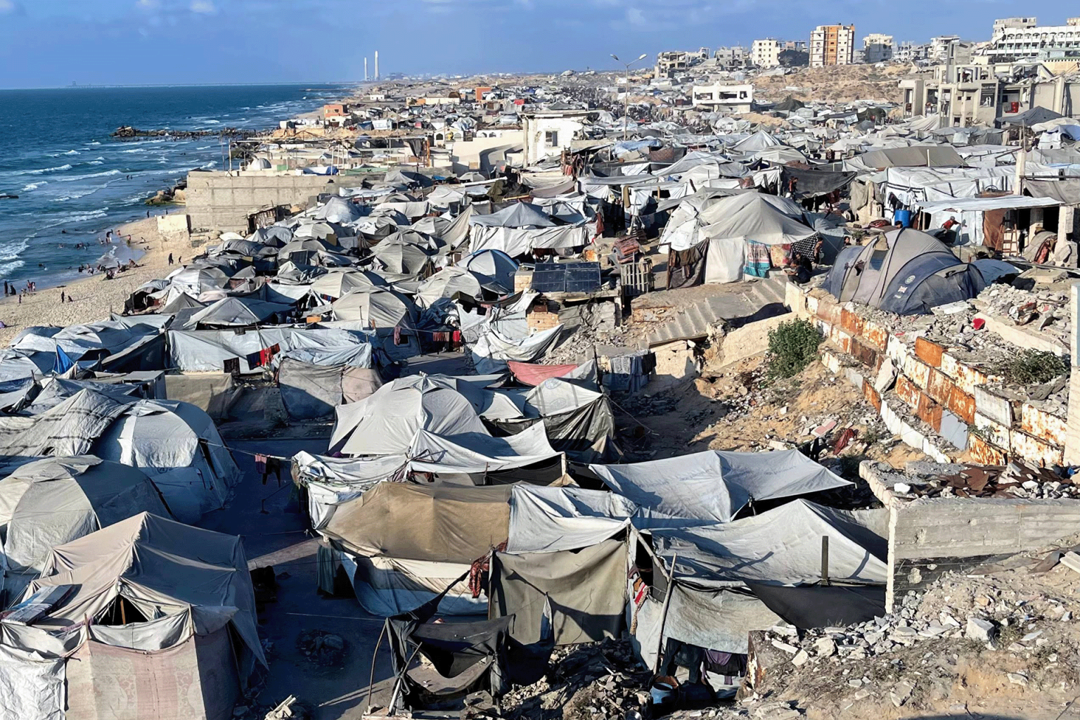 وعلى مقربة من حمدان تتناثر آلاف الخيام بشكل عشوائي بعدما ضاقت السبل بأصحابها إثر التهديدات الإسرائيلية باحتلال مدينة غزة، والتي زجَّت بأكثر من 1.2 مليون فلسطيني من سكان مدينة غزة وشمالها في مساحة ضيقة وسط وغرب المدينة.