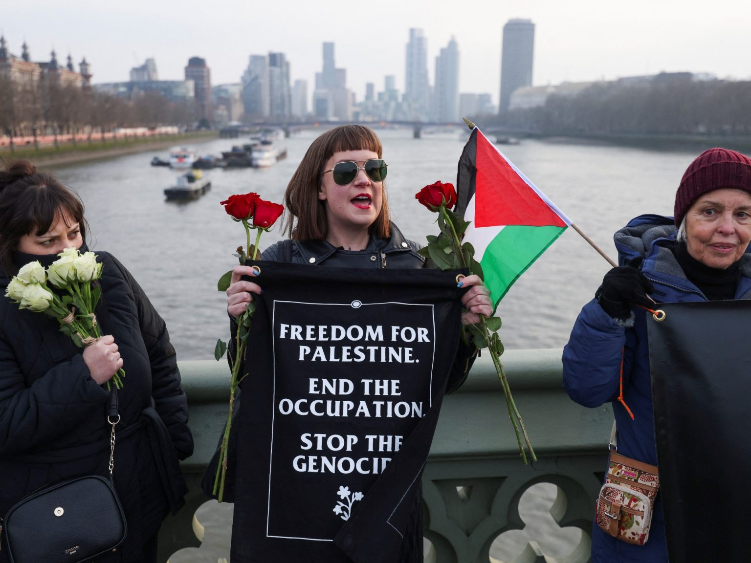 وفي العاصمة البريطانية لندن، تظاهرت ناشطات على جسر وستمنستر وأمام مستشفى سانت توماس للمطالبة بوقف الإبادة الجماعية في غزة.