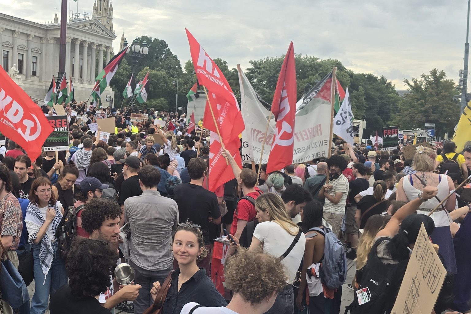 شهدت العاصمة النمساوية فيينا، أمس الثلاثاء، وقفة احتجاجية حاشدة أمام مبنى البرلمان، بدعوة من منظمات حقوقية وأحزاب يسارية، للمطالبة بوقف فوري للحرب الإسرائيلية على قطاع غزة، ووقف “الإبادة الجماعية” المستمرة بحق المدنيين.