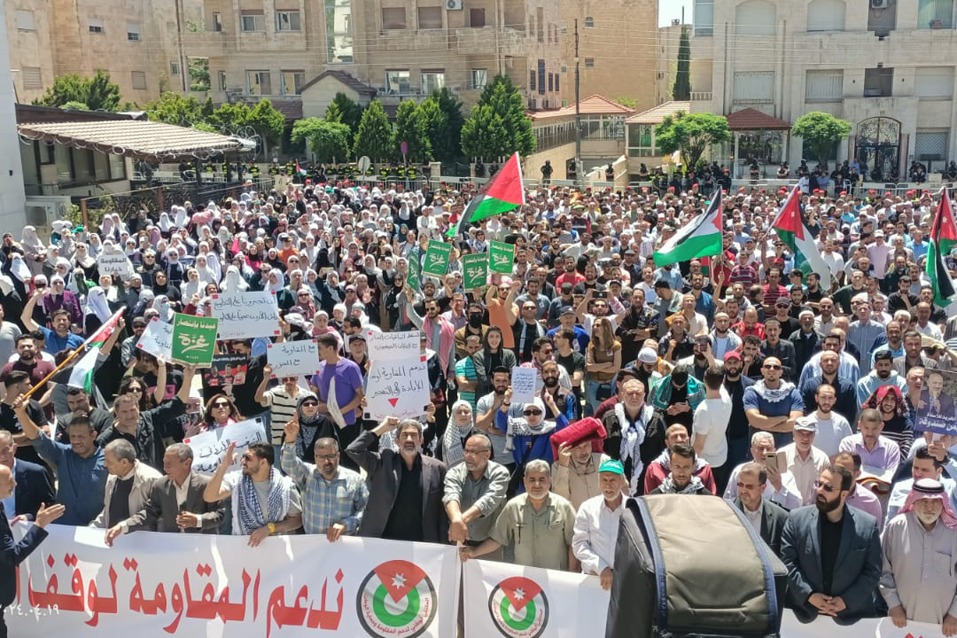 مظاهرة أردنية حاشدة دعما لغزة قرب سفارة إسرائيل في عمّان