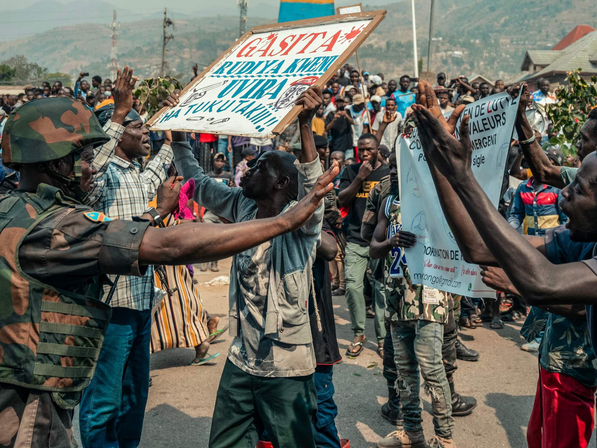 واندلعت الاحتجاجات بعد اتهام متظاهرين، بينهم ناشطون من المجتمع المدني وأفراد من مليشيا “والازيندو” المتحالفة مع الجيش، القائد العسكري الجنرال أوليفييه غاسيتا، الذي نُقل مؤخرا إلى أوفيرا، بدعم متمردي حركة “إم 23” المدعومة من رواندا، والمطالبة بإقالته.
