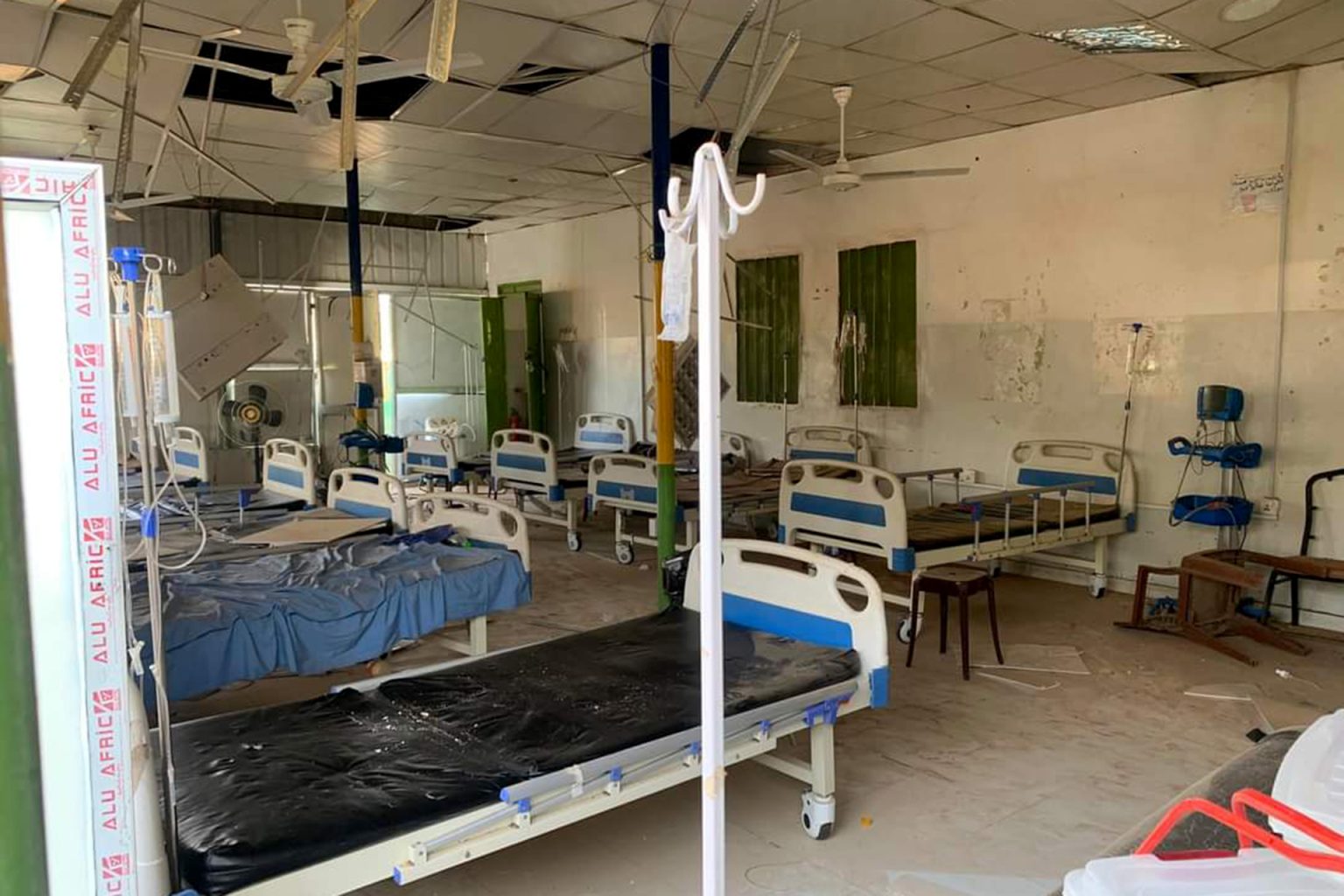 ٣- اثار الدمار الذي لحق بمستشفي الاطفال في مدينة الفاشر جراء وقوع قذيفة