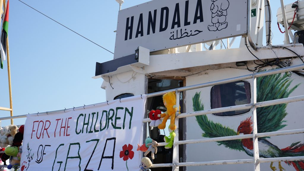 وكانت السفينة حنظلة قد انطلقت في 13 يوليو/تموز الجاري من ميناء سرقوسة في صقلية، وتجمّع لوداعها عشرات الأشخاص في الميناء حاملين الأعلام الفلسطينية والكوفيات، ورافعين شعارات تطالب بالحرية لفلسطين.