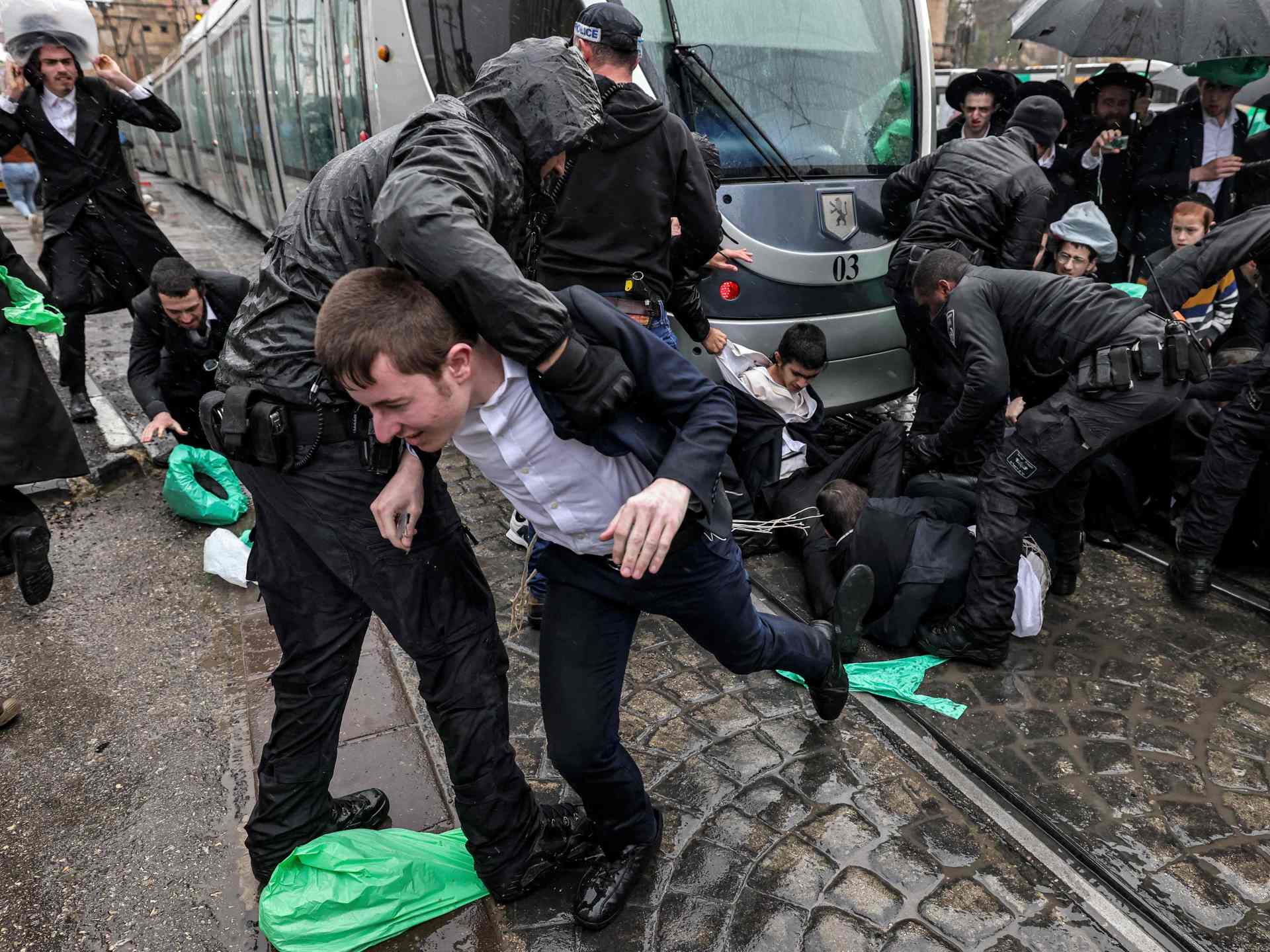 وحاول المتظاهرون الحريديم اليوم إغلاق جسر رئيسي في القدس وتصدت الشرطة الإسرائيلية لهم مستخدمة سيارات المياه العادمة لتفريقهم واعتقلت أحدهم.