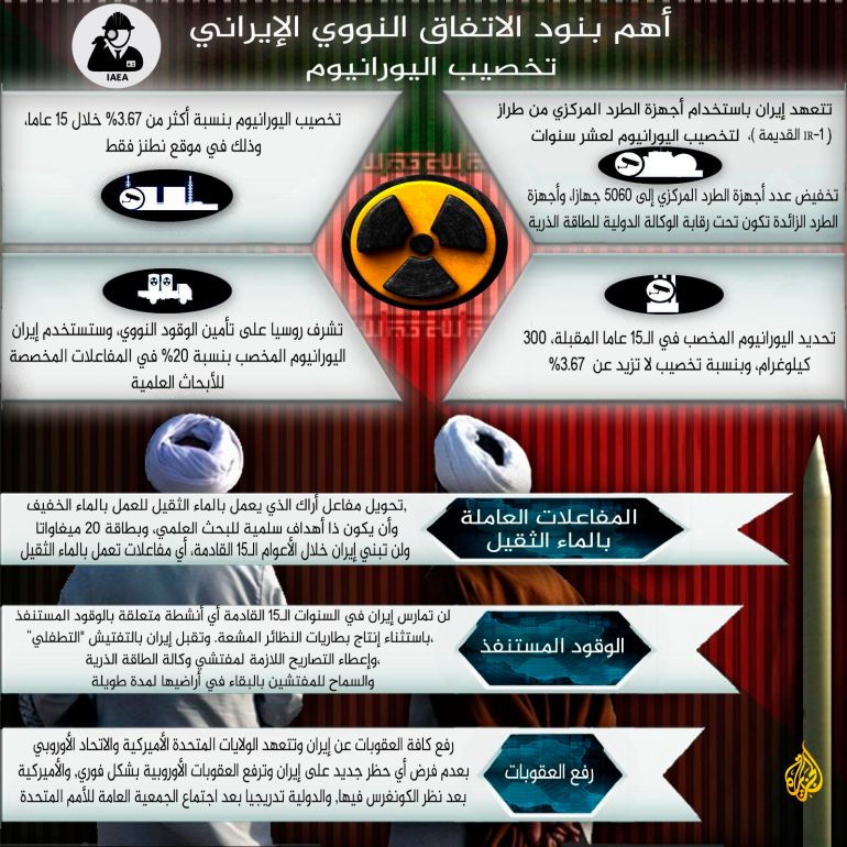 إنفوغراف أهم بنود الاتفاق النووي الإيراني (الجزيرة)