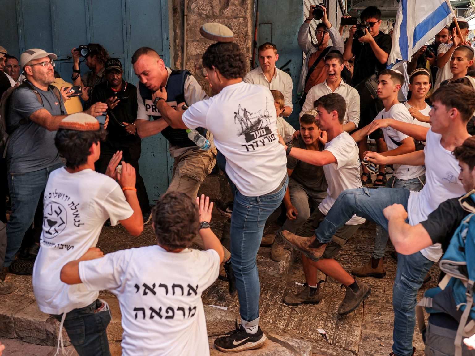 وأضافت أنه لم يتم الاعتداء فقط على المراسل، بل إن من وصفتهم بالمشاغبين هددوا وشتموا ودفعوا واعتدوا على مارة فلسطينيين، وعلى كل شخص يتعرفون عليه كونه صحفيا أو يحاول تصويرهم.