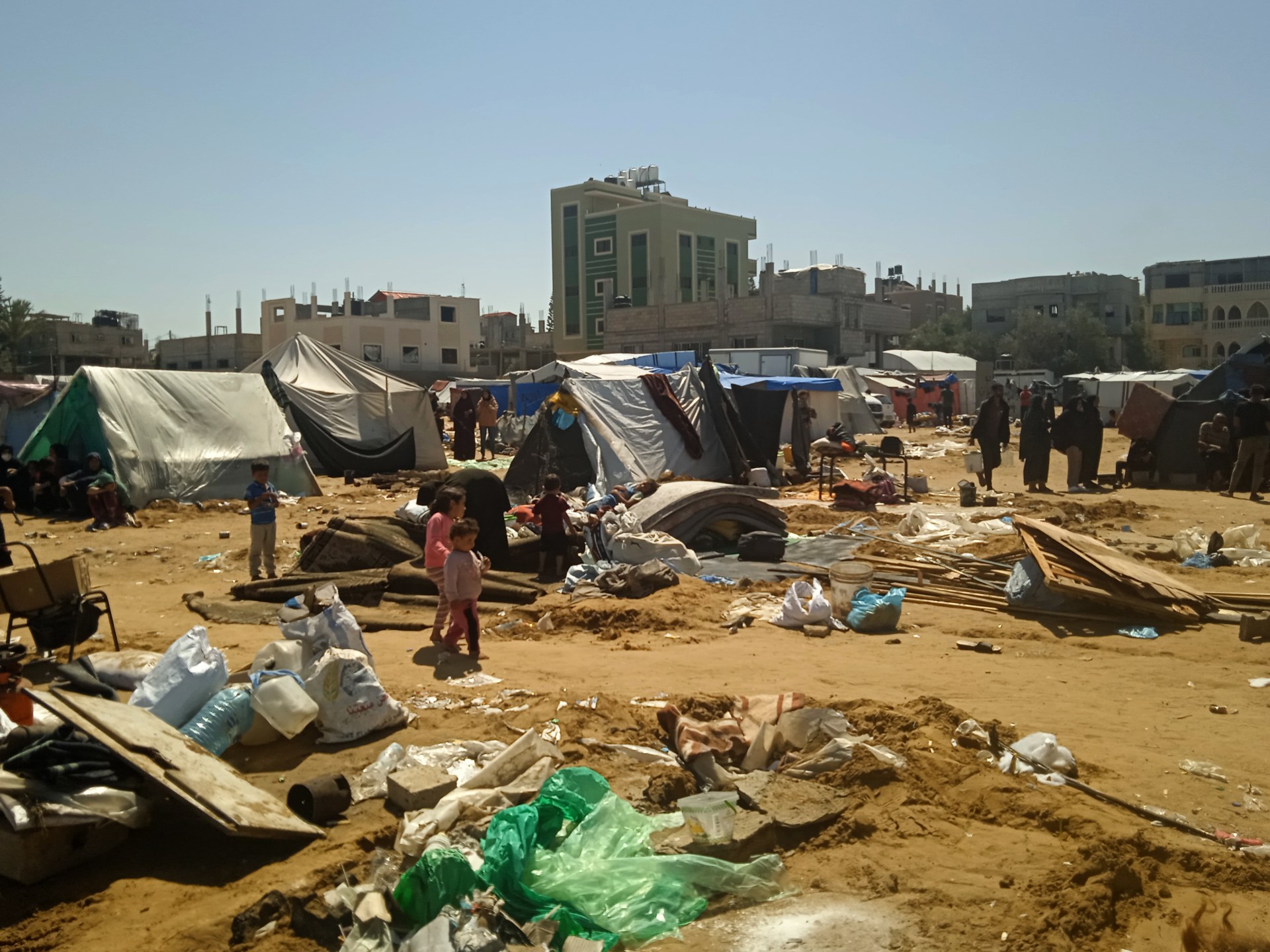 تقول وكالة “أونروا” إن النازحين غادروا غالبية مراكز الإيواء في رفح، ولجؤوا إلى المواصي في خان يونس ودير البلح، التي باتت مكتظة بشكل لا يطاق، وتعاني من أوضاع إنسانية مزرية.