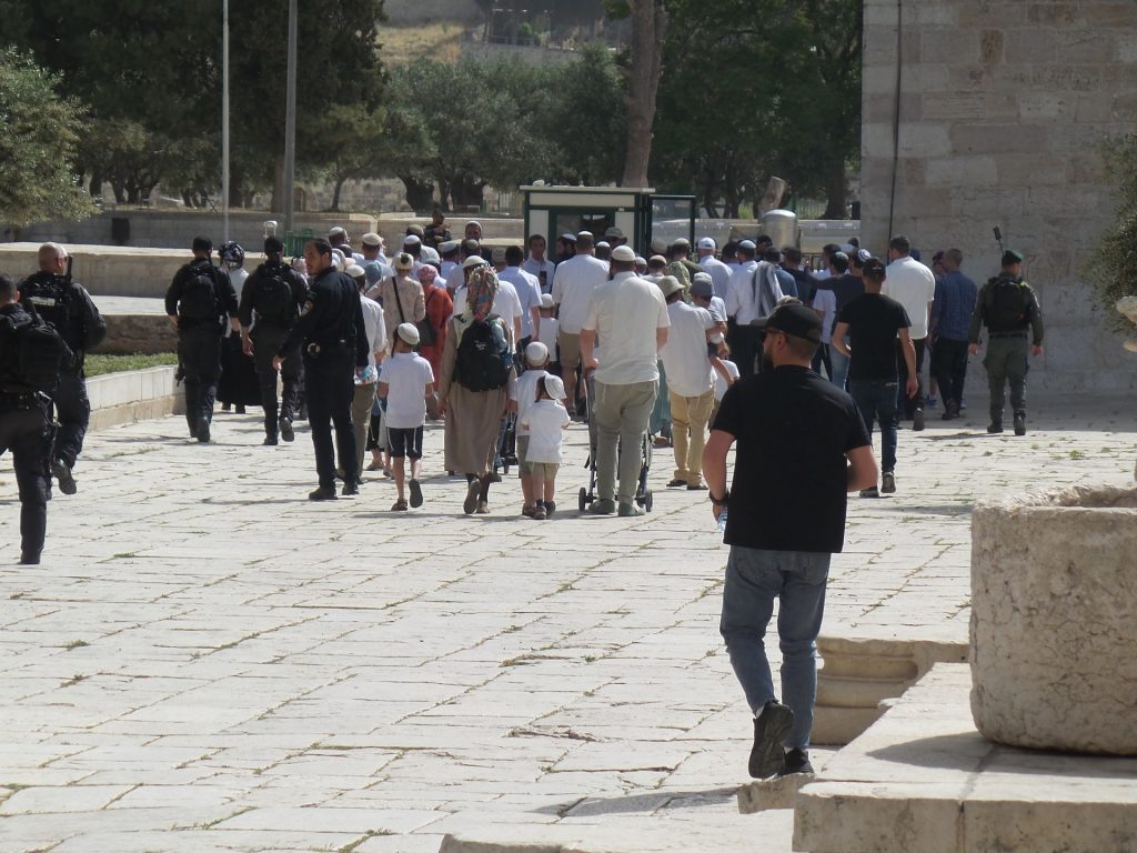 – في خامس أيام اقتحامات الفصح أدى المتطرفون صلاة علنية في الساحة الشرقية بقيادة حاخامات، من أجل شفاء وزير الأمن إيتمار بن غفير الذي أُصيب بحادث سير.
