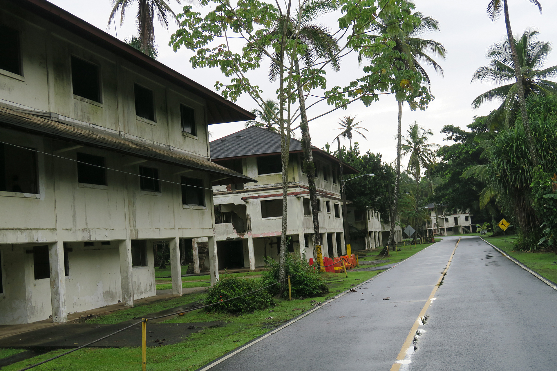 مبنى مهجور في قاعدة شيرمان يجاور المخرج الشرقي لقناة بنما (الجزيرة)