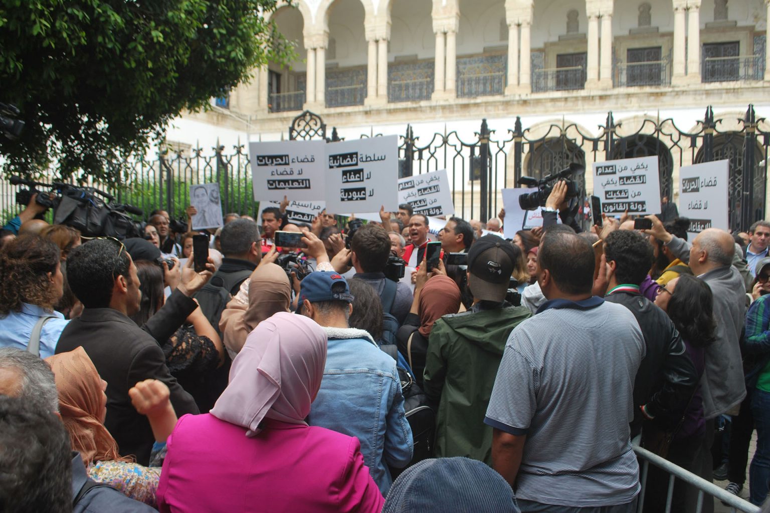 وفي تصريح للجزيرة نت، يقول الهمامي، وهو أحد المحامين الملاحقين قضائيا بتهمة التآمر على أمن الدولة، وبموجب المرسوم 54، إن “هيئة المحامين سجلت موقفا إيجابيا بفضحها الممارسات القمعية للنظام الحالي، وتمسكها بمبادئ الديمقراطية، واستقلال القضاء والمحاماة ضد هيمنة السلطة ووضع اليد عليها”.