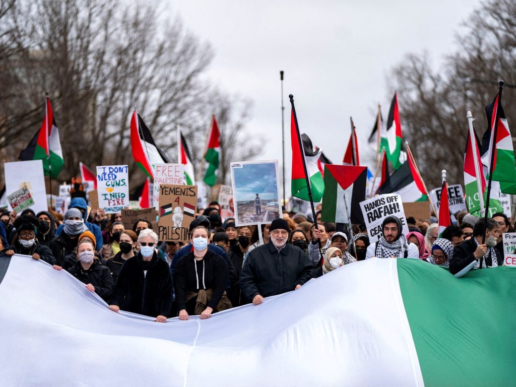 وقد وجد الرئيس الأميركي جو بايدن نفسه عالقا، في الداخل، بين مطالبة أعضاء في الحزب الجمهوري له بدعم إسرائيل مهما كان الثمن، وبين حث أعداد متزايدة من أنصار الحزب الديمقراطي له على وقف إرسال الأسلحة المطرد إلى إسرائيل، وفقا لكارين دي يونغ.