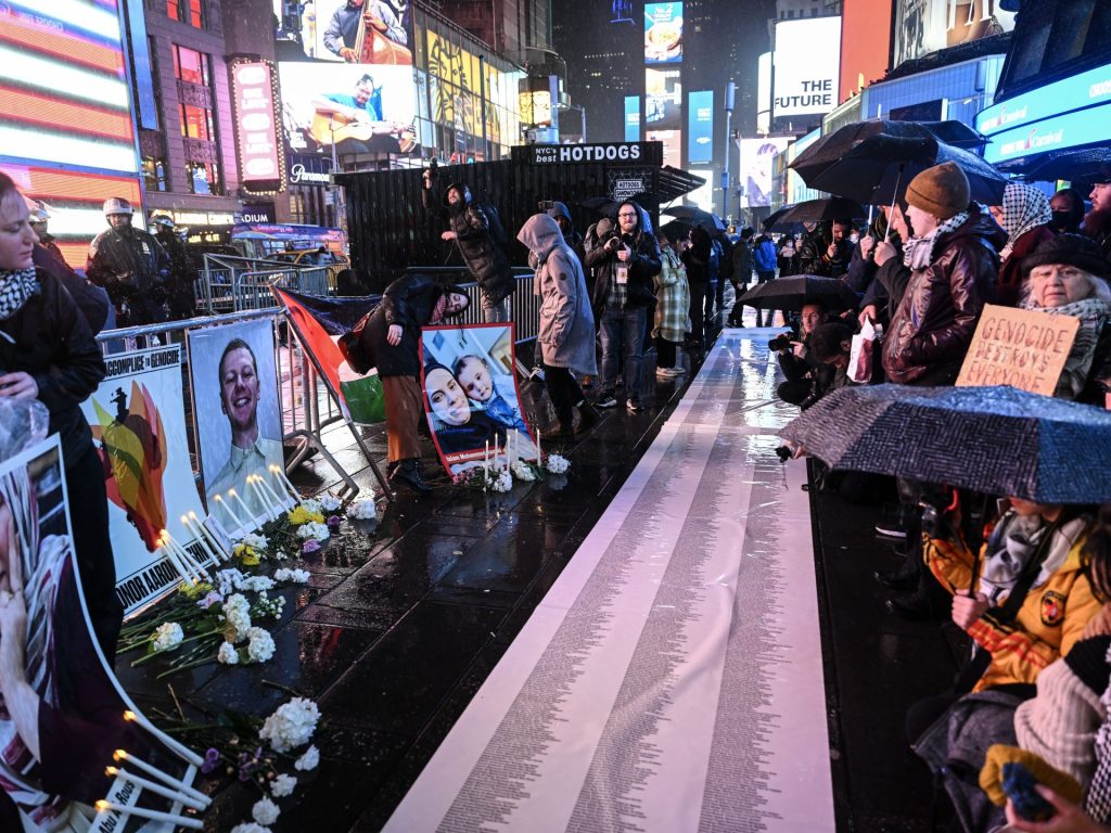 وحمل الناشطون لافتات كتبوا عليها عبارات مثل “تكريم آرون بوشنل” و”أوقفوا الدعم العسكري الأميركي للإبادة الجماعية في غزة”.