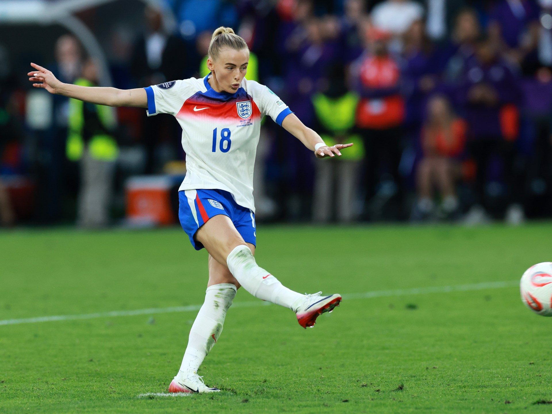 خطفت كلوي كيلي لاعبة منتخب إنجلترا للسيدات الأضواء من زميلاتها، بعد نجاحها في تسديد ركلة الترجيح الأخيرة في نهائي أمم أوروبا للسيدات بشكل مبهر.