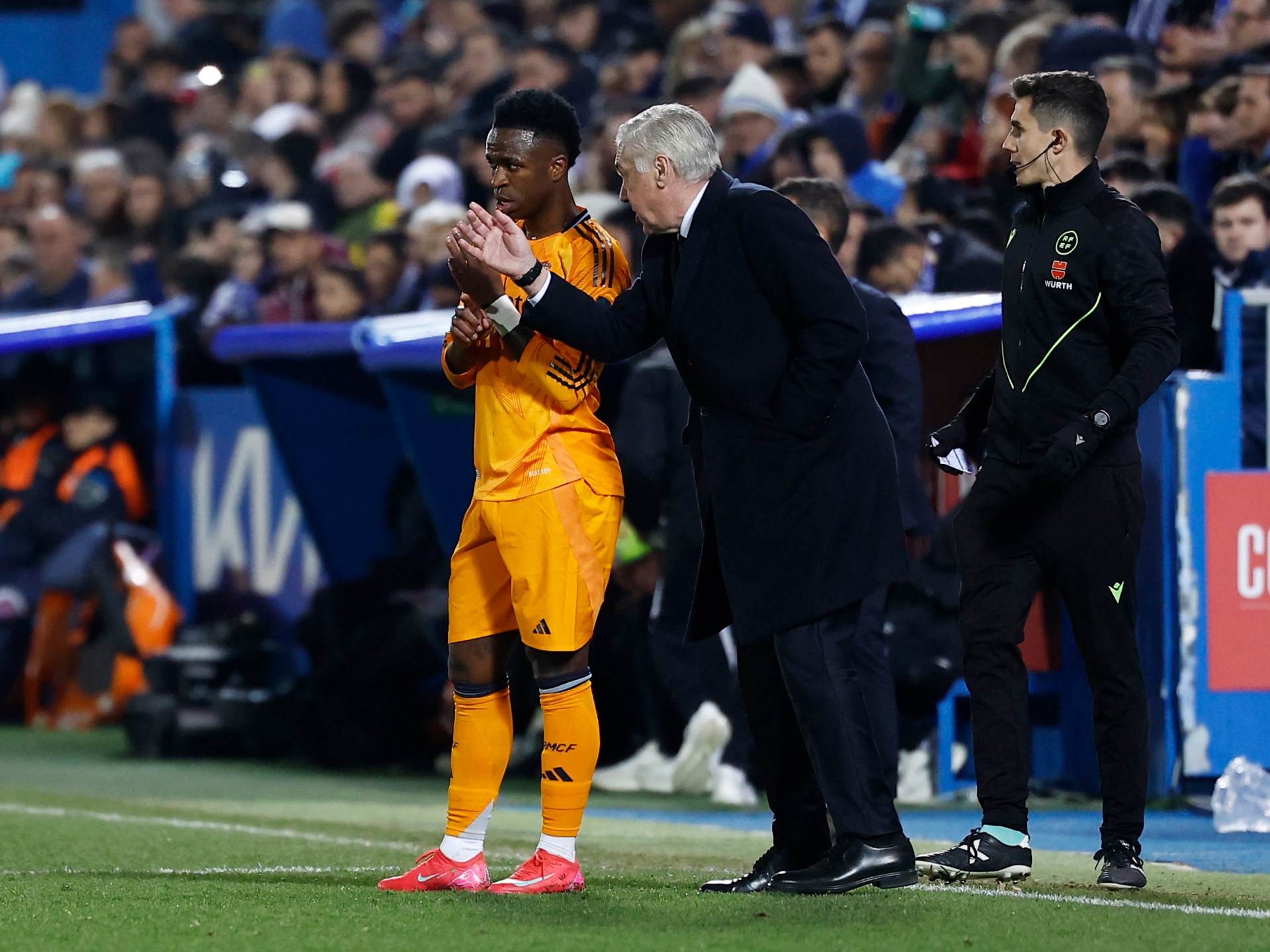 قرر مدرب ريال مدريد كارلو أنشيلوتي دعم لاعبه المخضرم لوكا مودريتش إثر مشادة بينه وبين زميله فينيسيوس جونيور خلال الفوز على ليغانيس في كأس ملك إسبانيا الأربعاء.