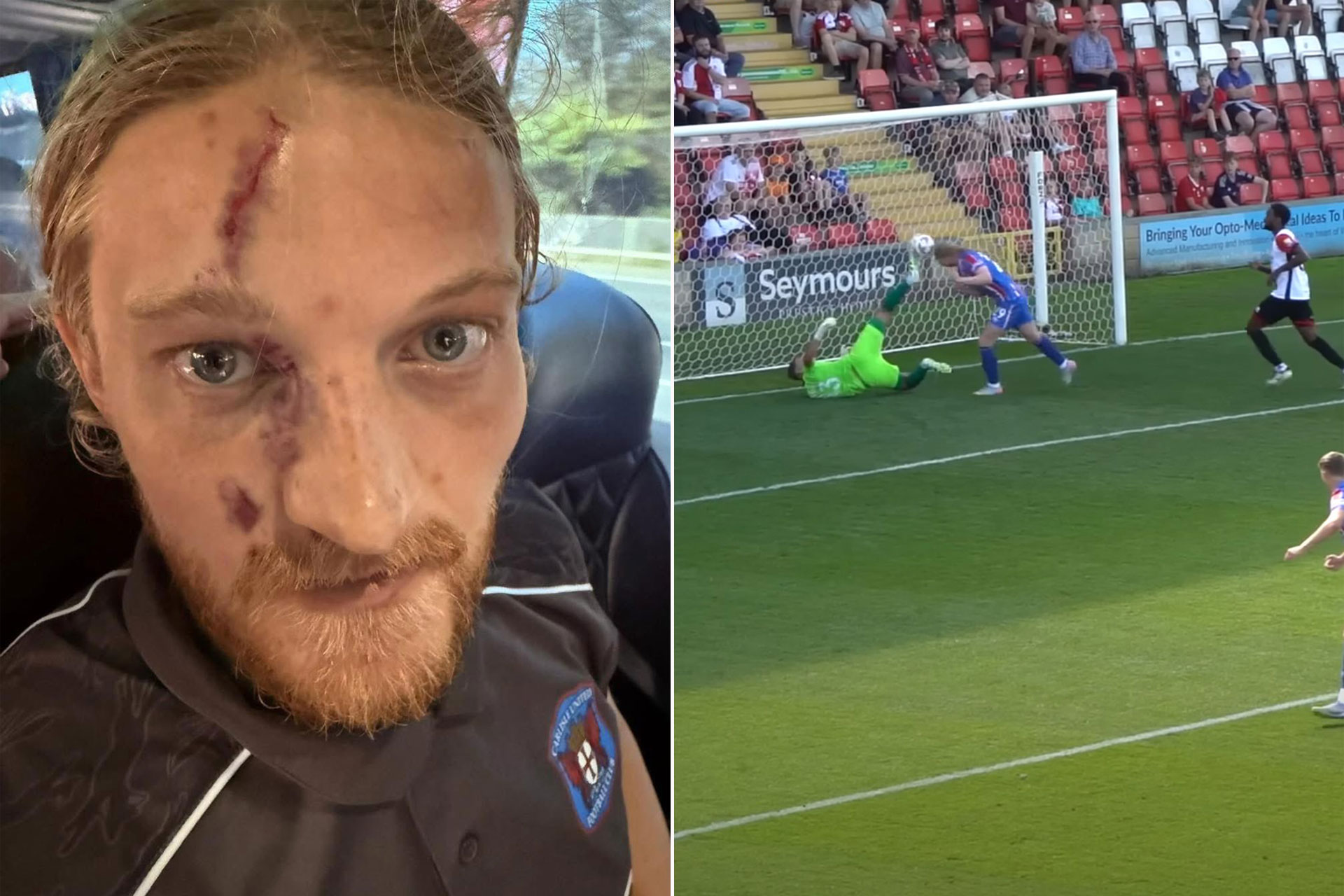 إصابة خطيرة تشوّه وجه لاعب إنجليزي بعد اصطدامه بحارس مرمى