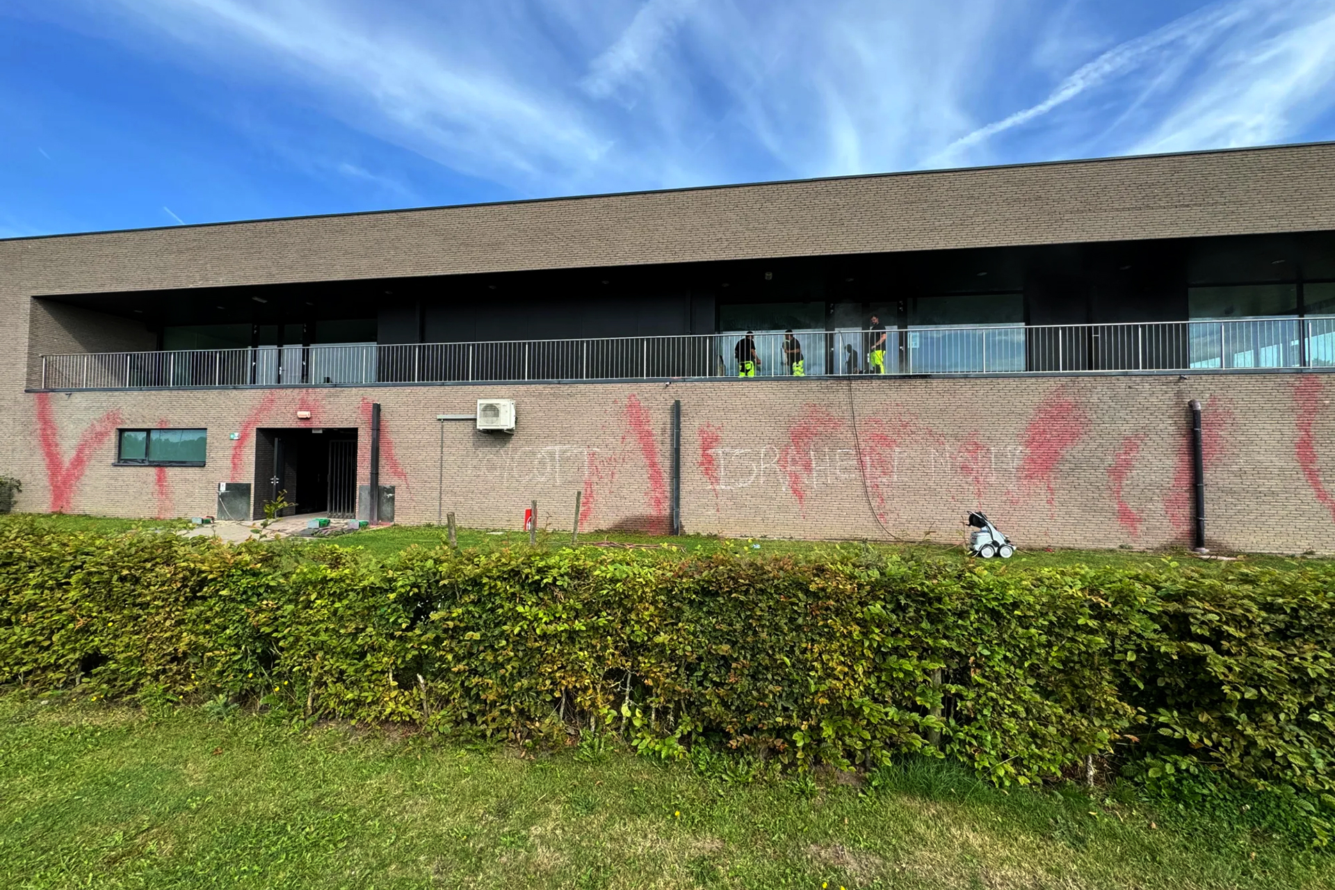 واستبق النشطاء تاريخ المباراة وطلوا جدران المبنى الذي كان من المفترض أن يحتضن المباراة باللون الأحمر، وكتبوا عليه شعارات مثل “قاطعوا إسرائيل الآن”.