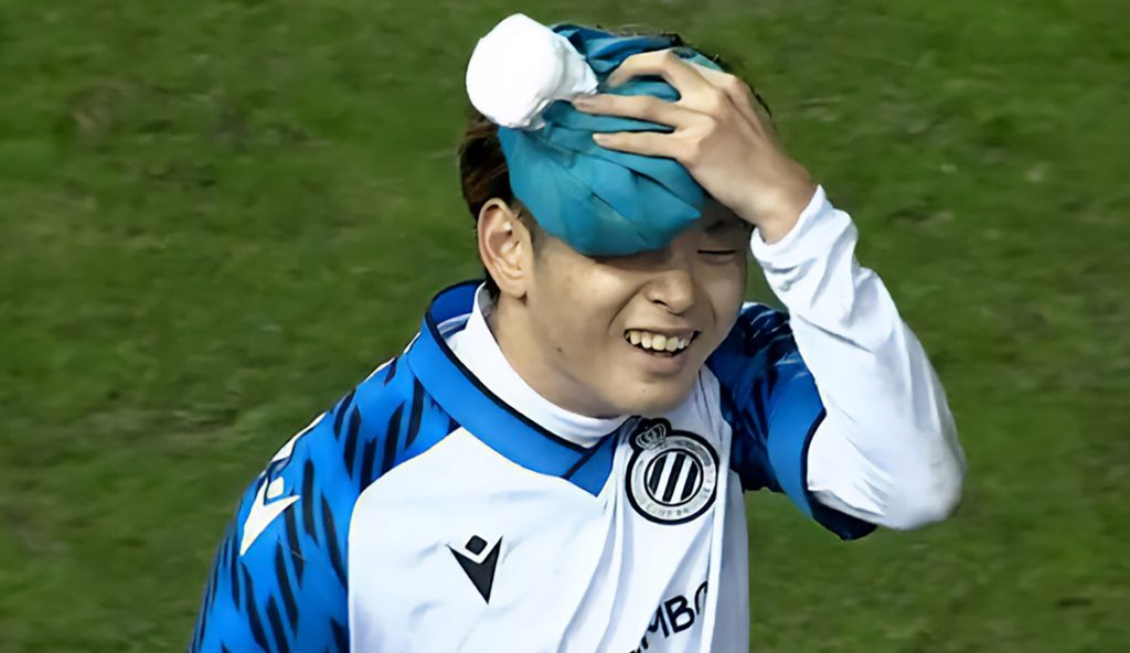 تلقى شيون هوما النجم الصاعد في فريق كلوب آن إكس تي الياباني ضربة على رأسه تركت كتلة بحجم كرة الغولف على جبهته عندما كان بصدد إحراز هدف بمرمى “إس كيه بيفرن” خلال مباراة في دوري كرة القدم.
