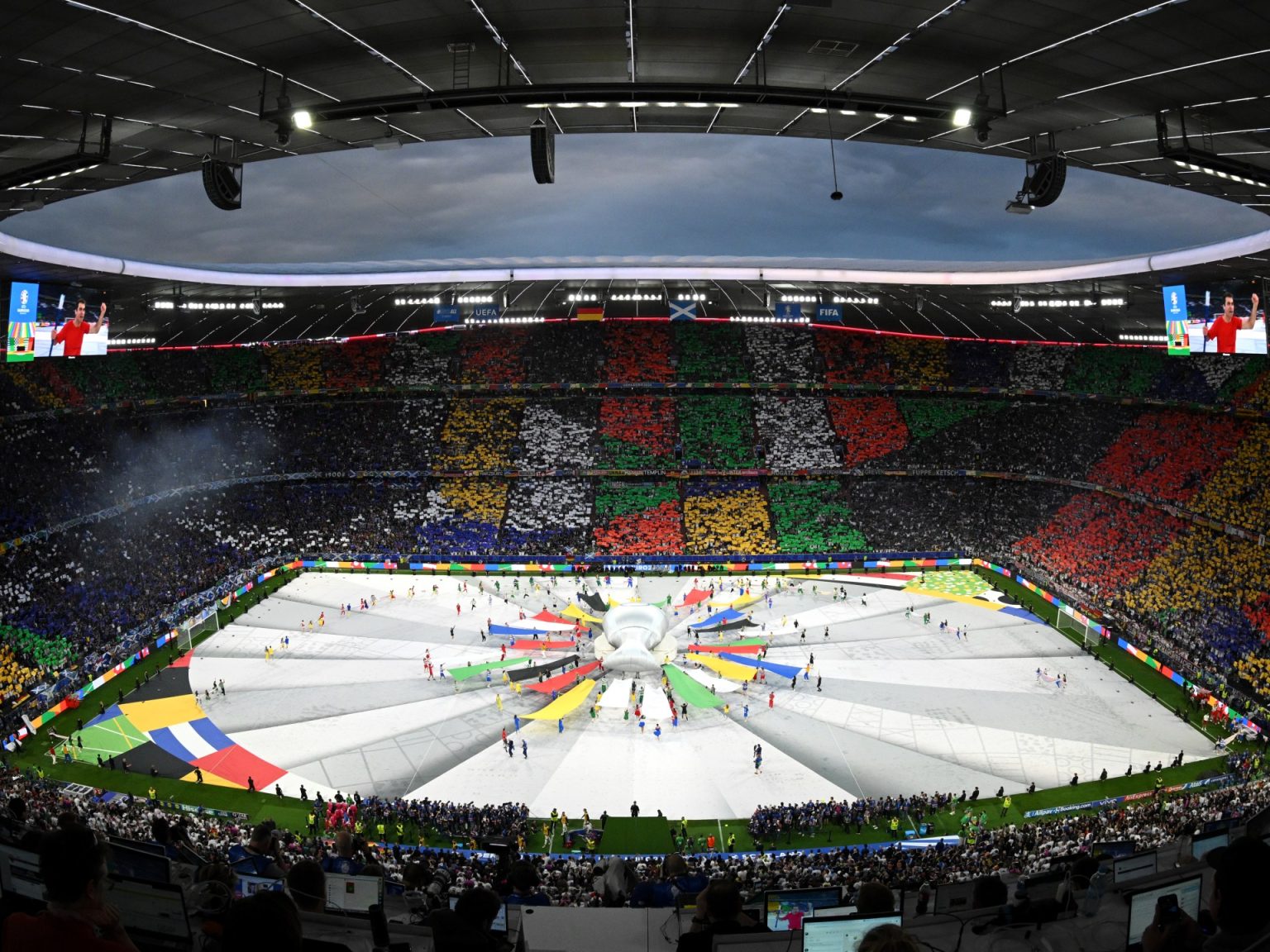 وأدى الراقصون -الذين ارتدوا ألوان الـ24 منتخبا المشاركين في البطولة- الأغنية الرسمية “نار” التي قام بغنائها المطرب ليوني أمام ملعب ممتليء بـ66 ألف متفرج، كان في مقدمتهم الرئيس الألماني فرانك-فالتر شتاينماير.